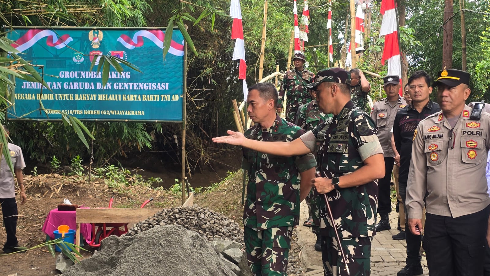 Peletakan batu pertama dilakukan bersama unsur pimpinan daerah dan jajaran TNI sebagai simbol dimulainya pembangunan infrastruktur yang diharapkan memberi dampak jangka panjang bagi masyarakat sekitar.
